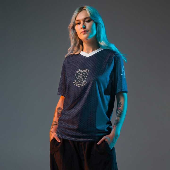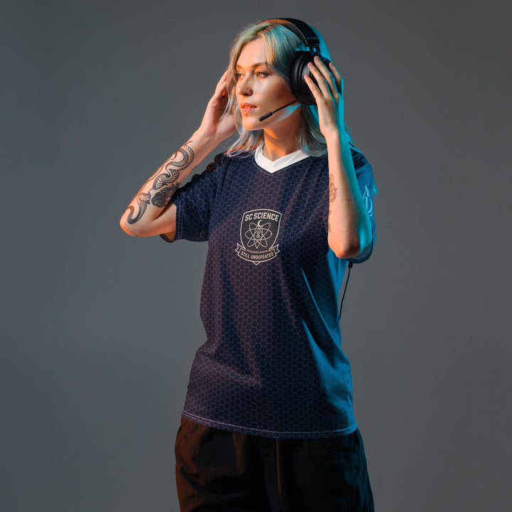 Ascenda Luna launches the unique SC SCIENCE trademark sports jersey made of 100% recycled polyester fabric, this shirt is breathable, moisture-wicking, and has a double-layered v-neck collar that creates a premium look.